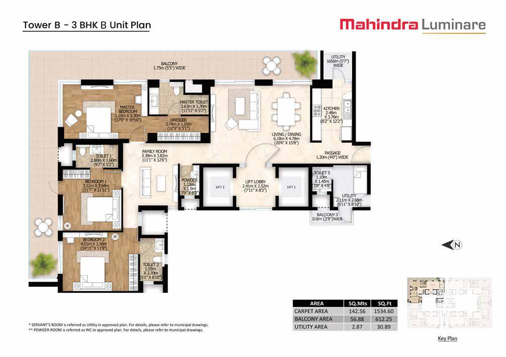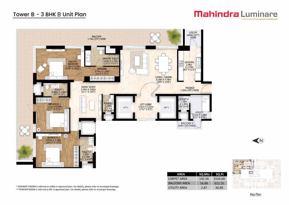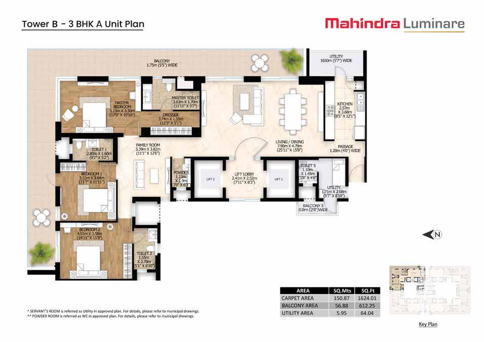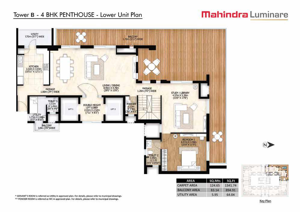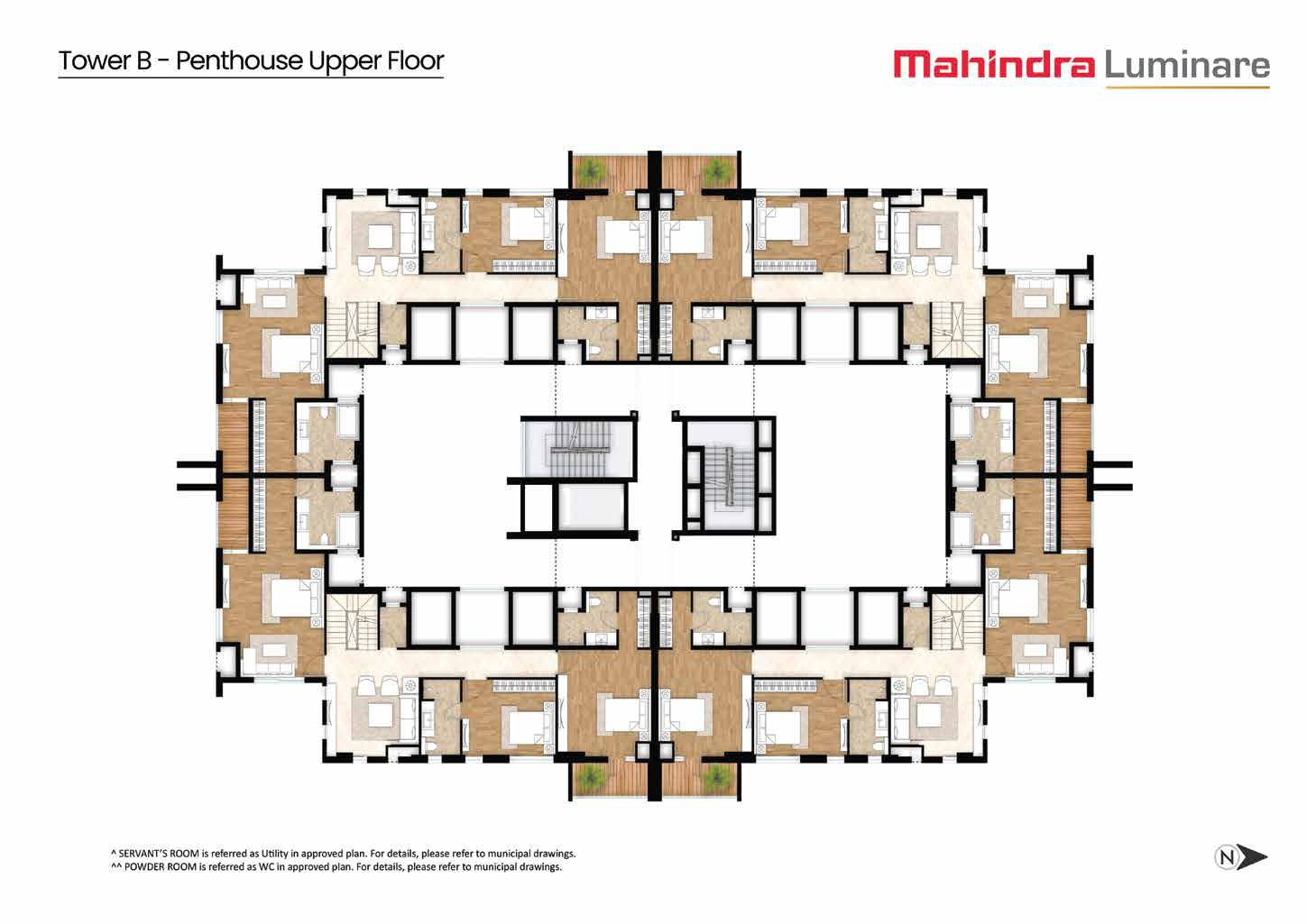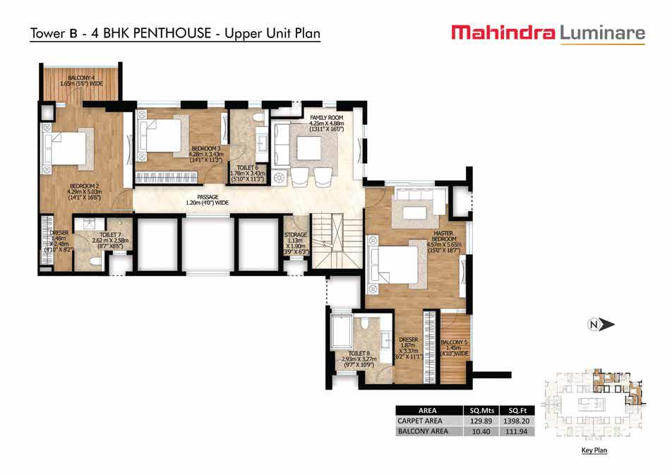 Mahindra Luminare offers spacious 3 and 4 BHK apartments and penthouses with the following configurations: