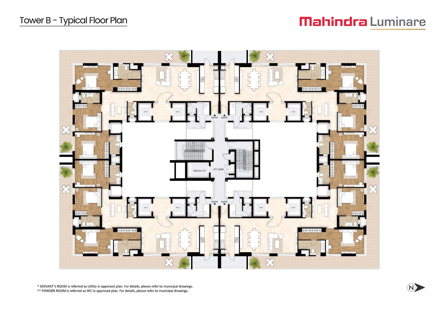 - Private lift lobbies ensuring utmost privacy.